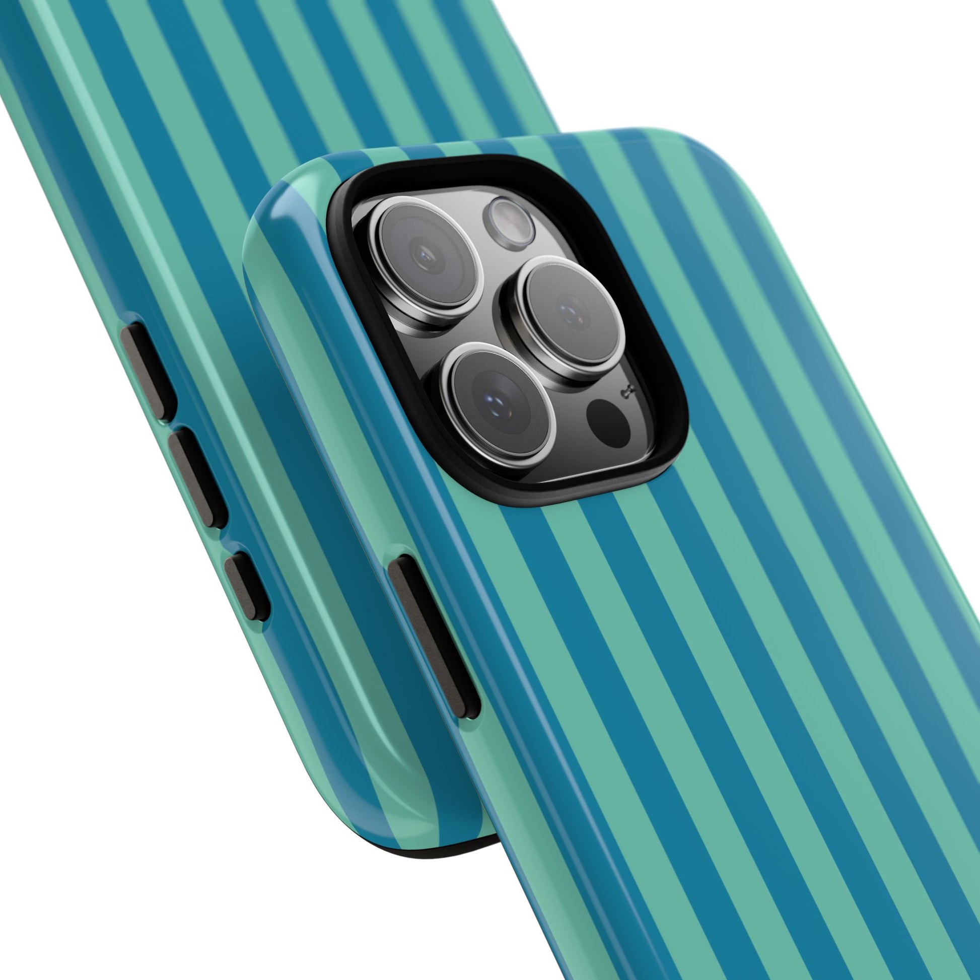 Aqua & Teal Striped Tough Phone Case - Minimal Retro Vibes