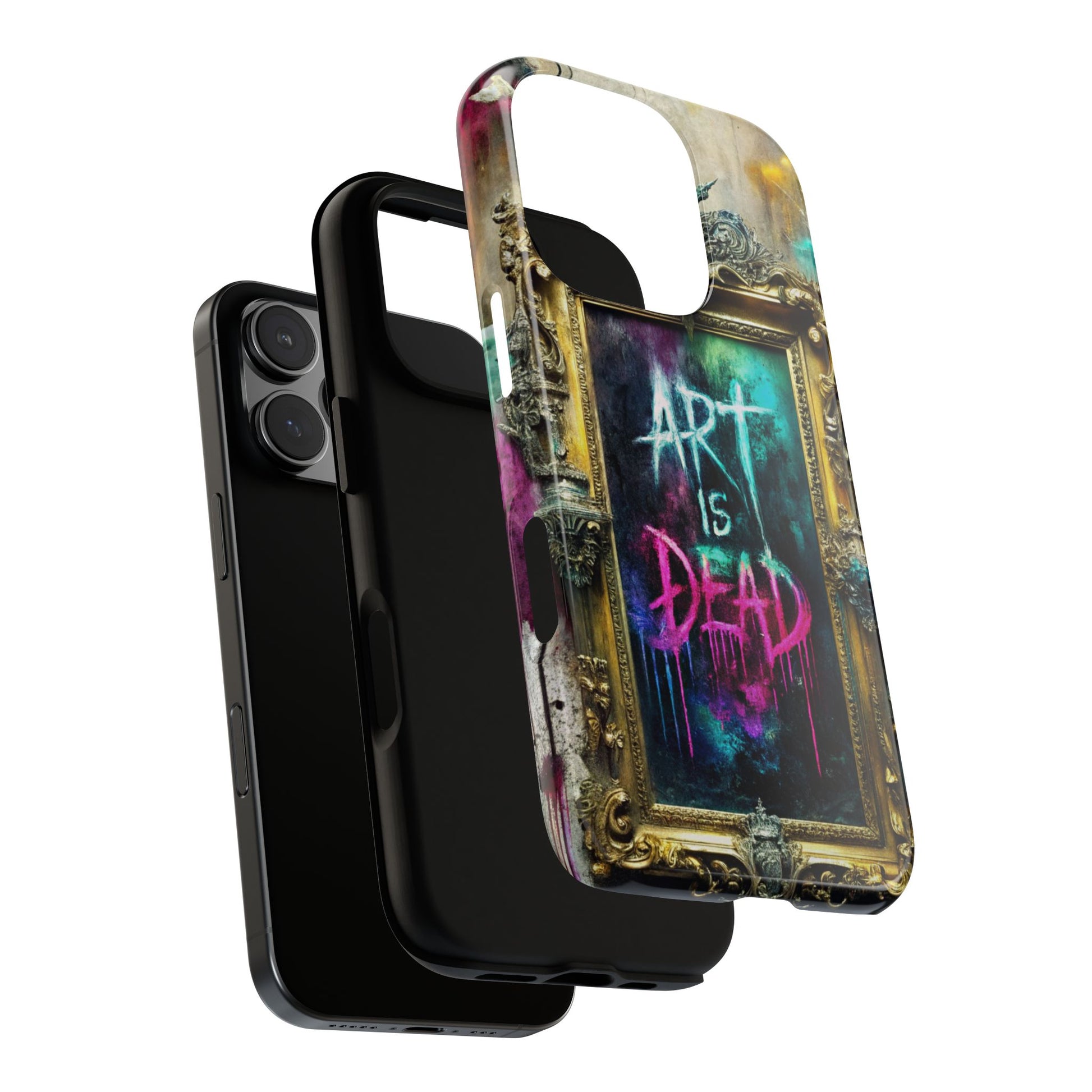 Make a bold statement against artistic conformity with this provocative Art Is Dead phone case featuring neon graffiti punk style in an ornate baroque frame - the perfect fusion of classical elegance and street rebellion that questions everything about traditional art.