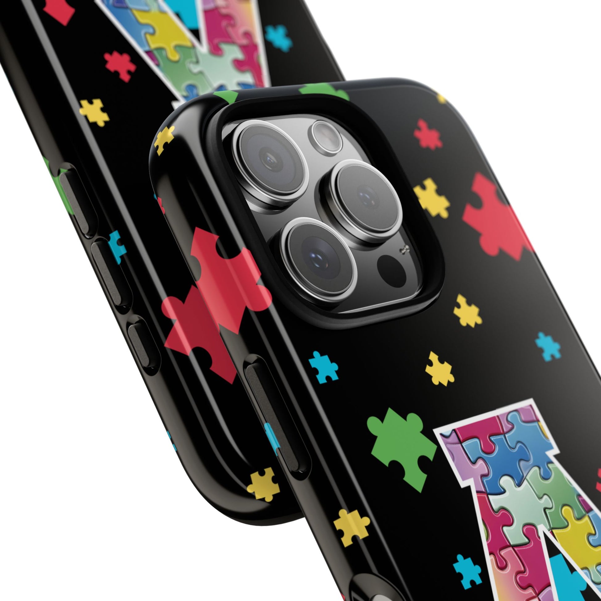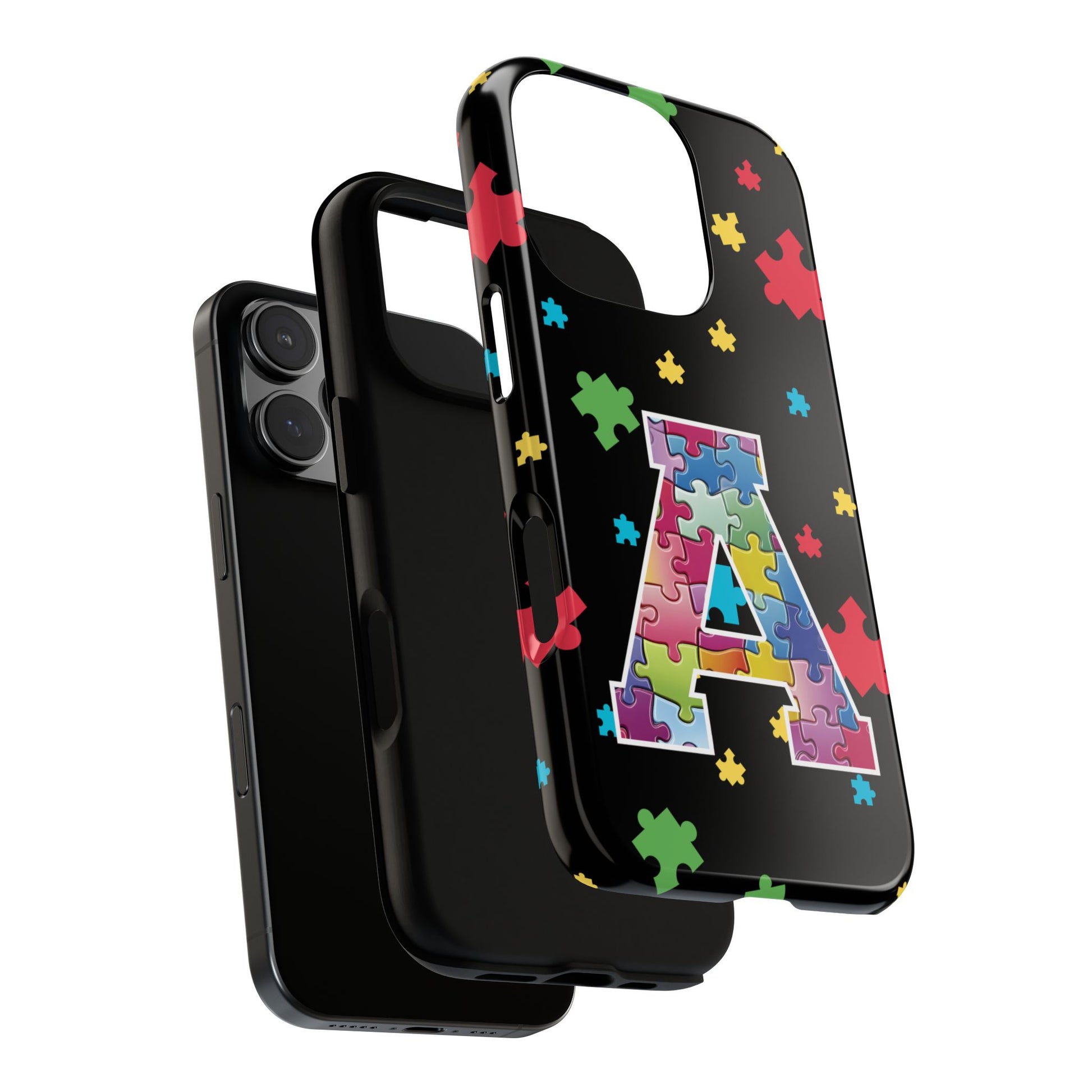 Autism Awareness Tough Phone Case - Colourful Letter A Puzzle Design - Protective Case for Popular Smartphones