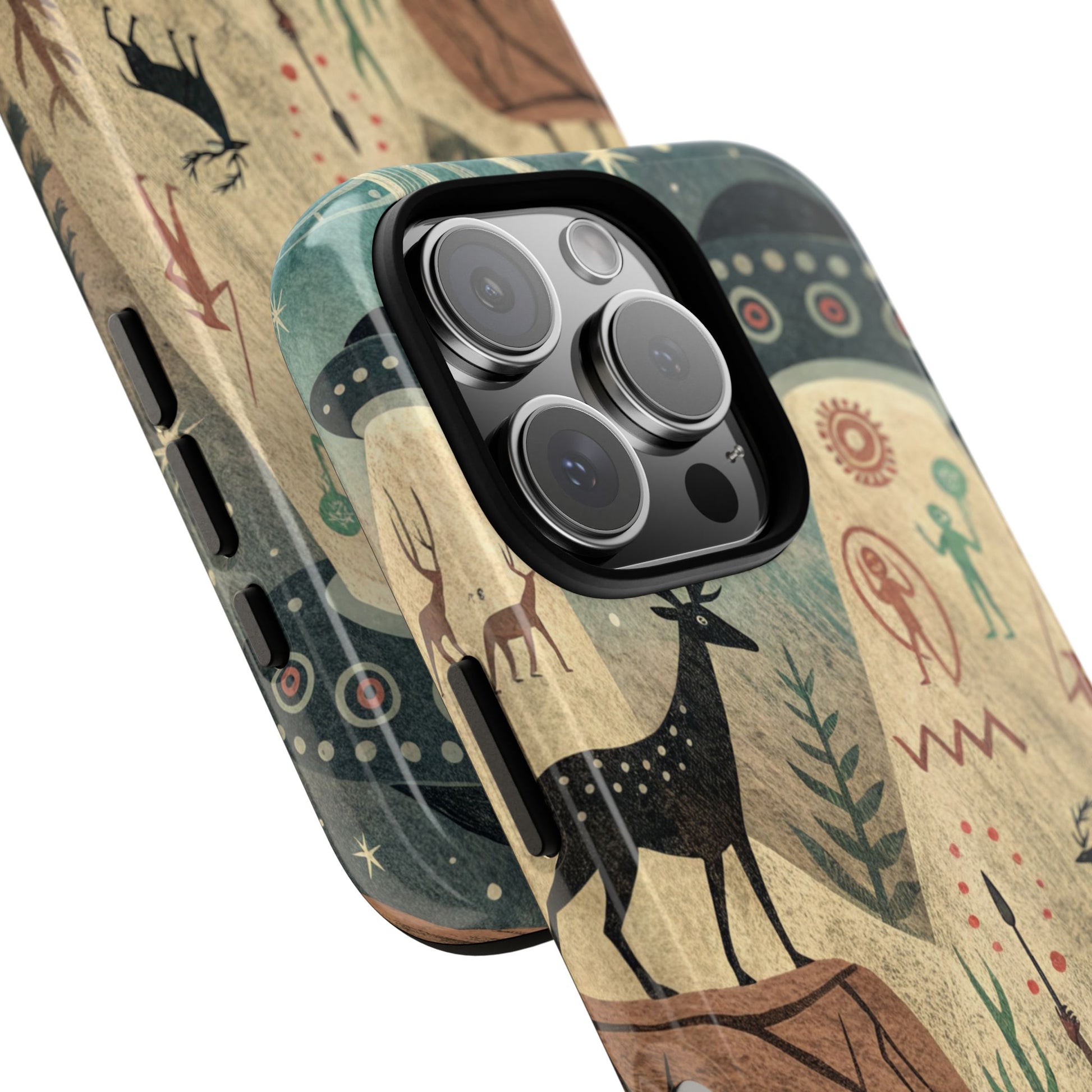 Channel the raw artistic energy of Jean-Michel Basquiat with this striking UFO phone case that merges street art rebellion with cosmic mystery. Bold, expressive brushstrokes and primitive cave art aesthetics collide with otherworldly UFO imagery, creating a phone case that's part gallery piece, part conversation starter, and entirely unforgettable.