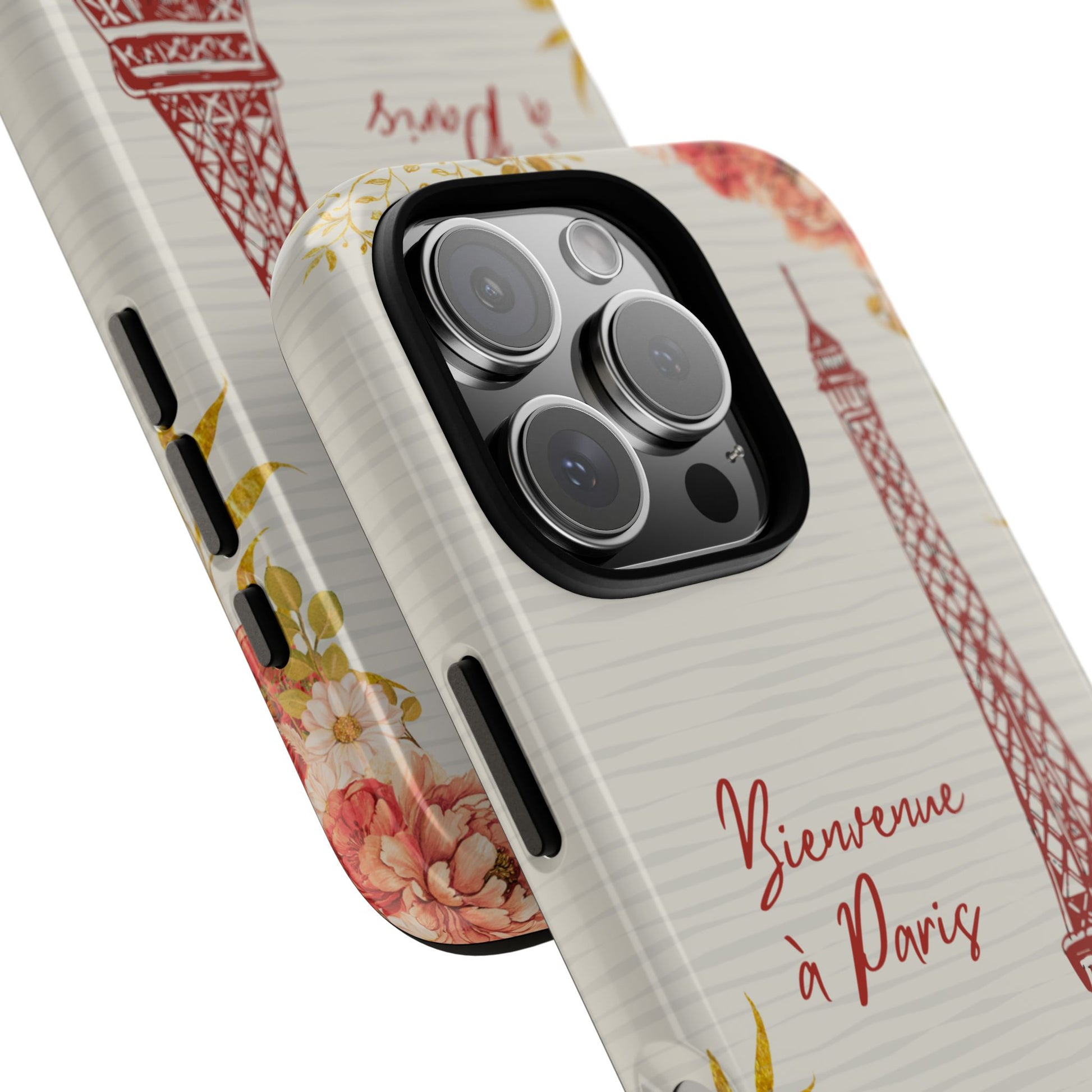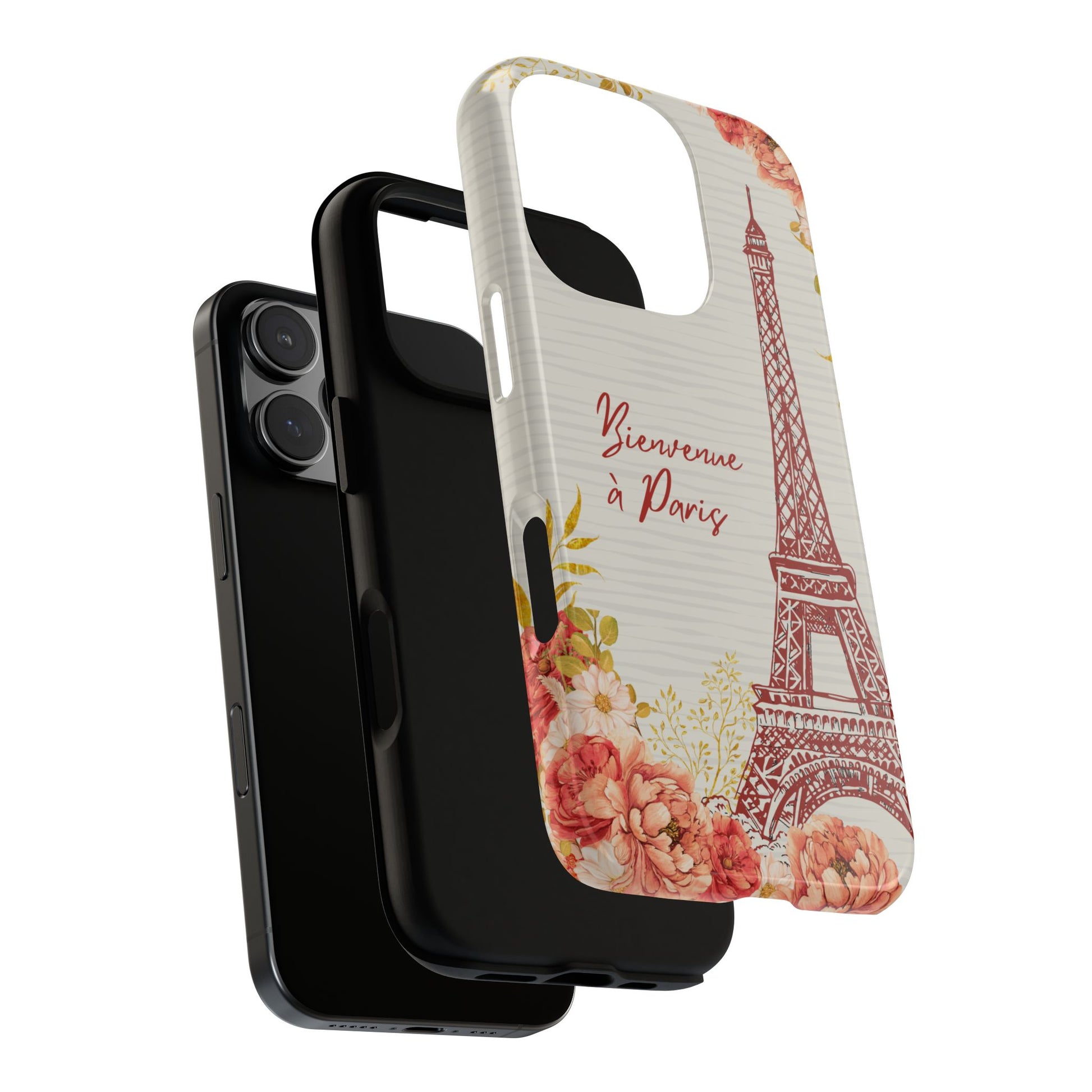 Bienvenue à Paris Eiffel Tower Floral Phone Case - French Chic Aesthetic for Popular Smartphones