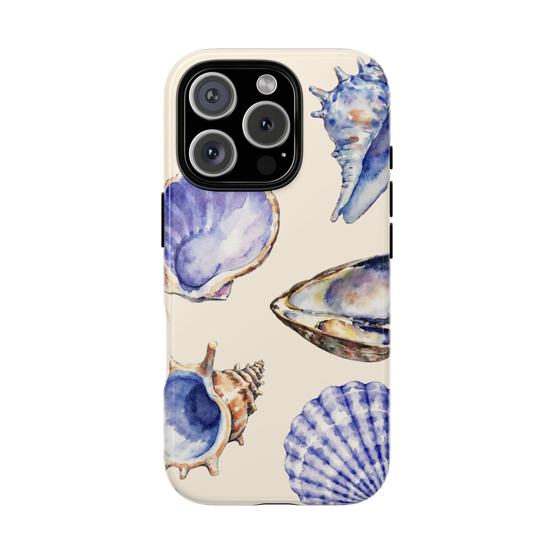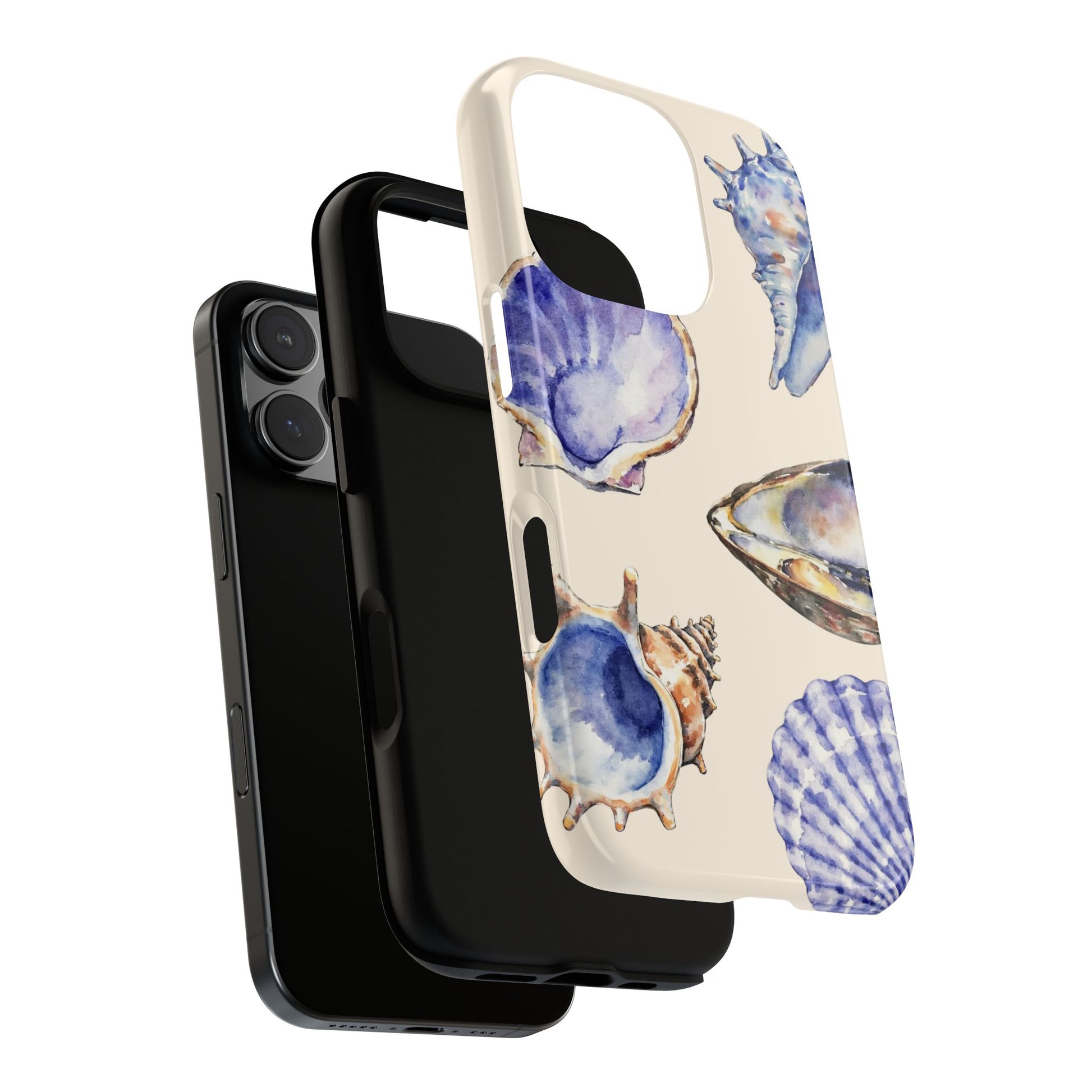 Blue Watercolor Seashell Tough Phone Case - Coastal Shell Design on Cream Background