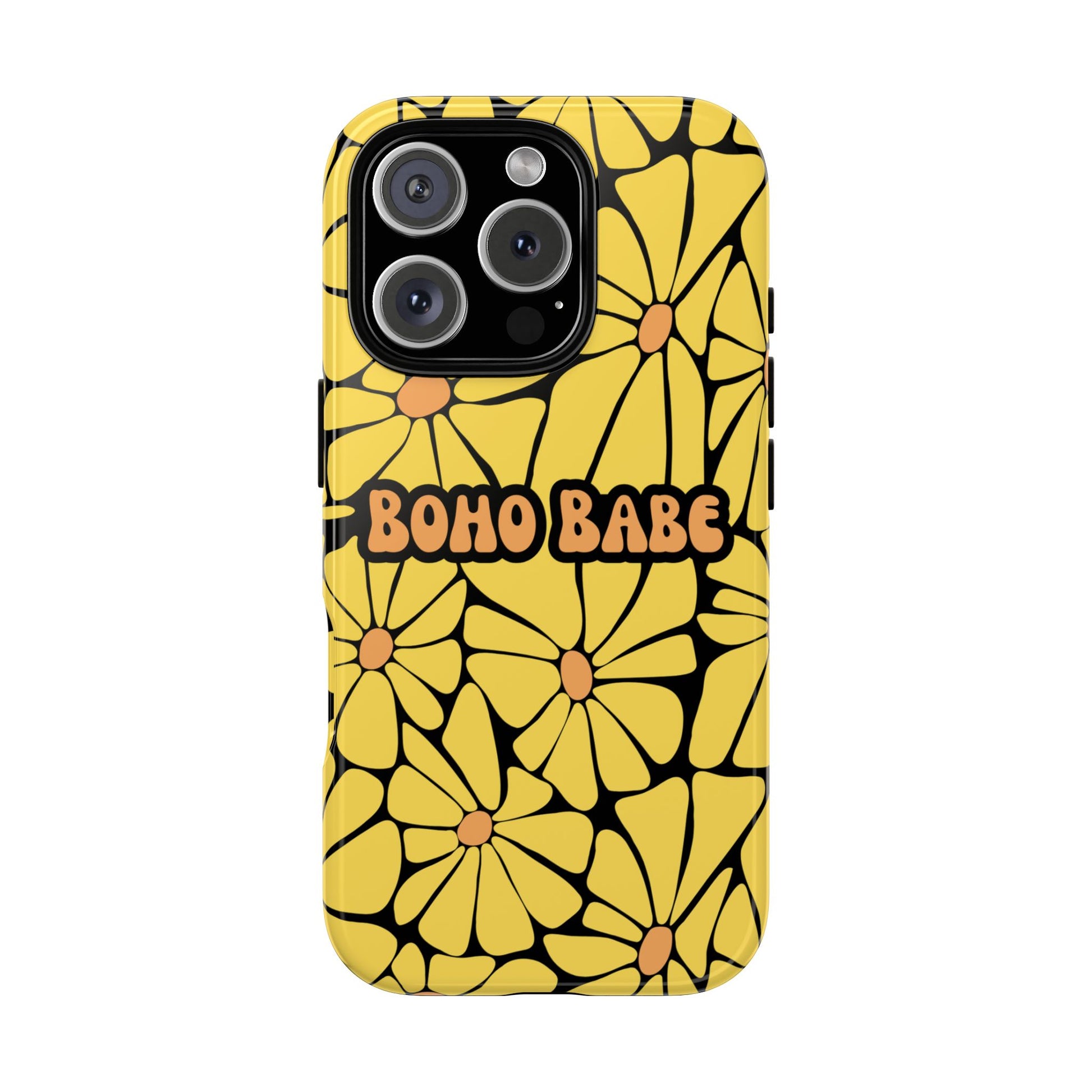 Embrace your free-spirited side with our Boho Babe Yellow Flower Phone Case. Featuring vibrant yellow blooms against a striking black background, this case captures the bold, retro boho aesthetic that celebrates your unique style while providing superior protection for your device.