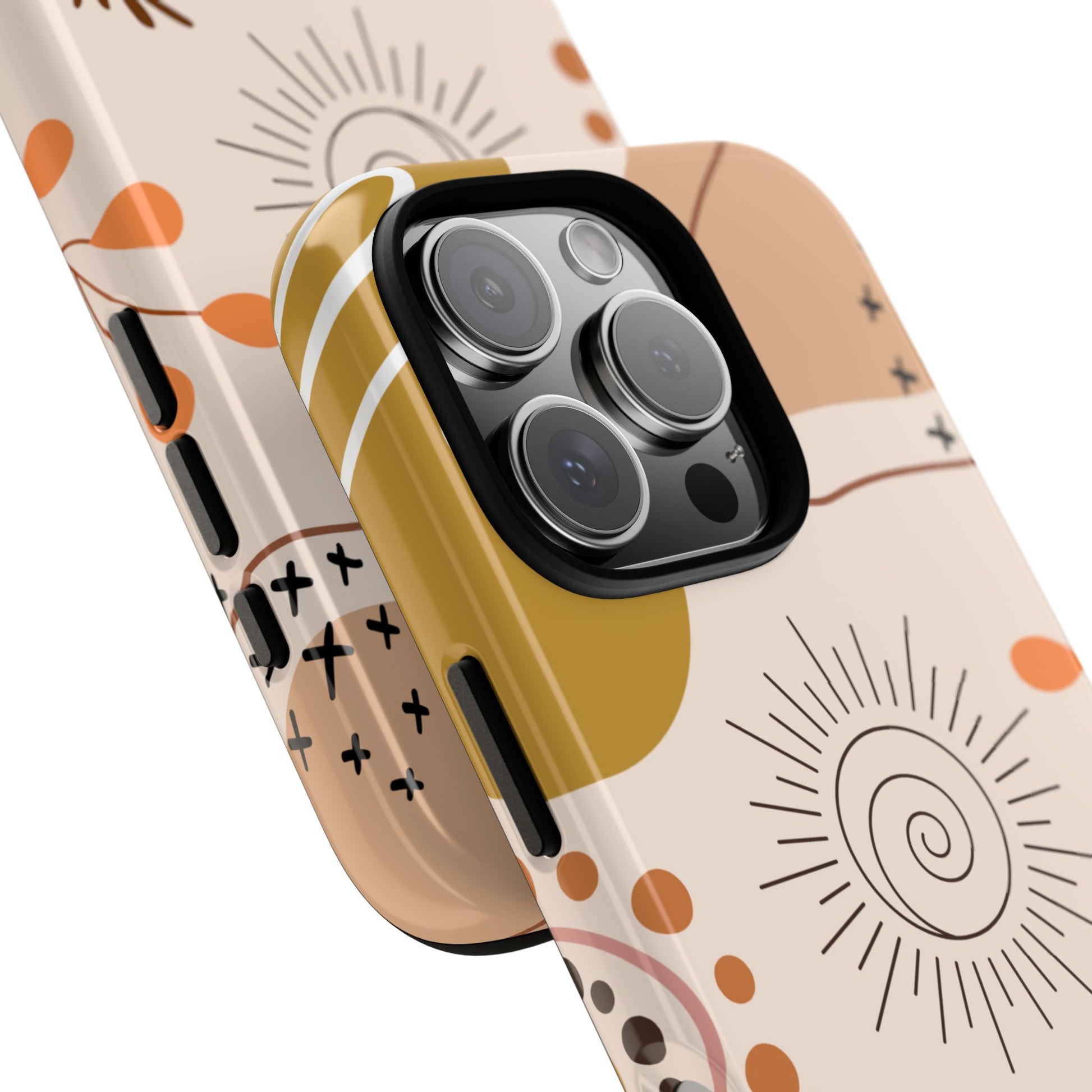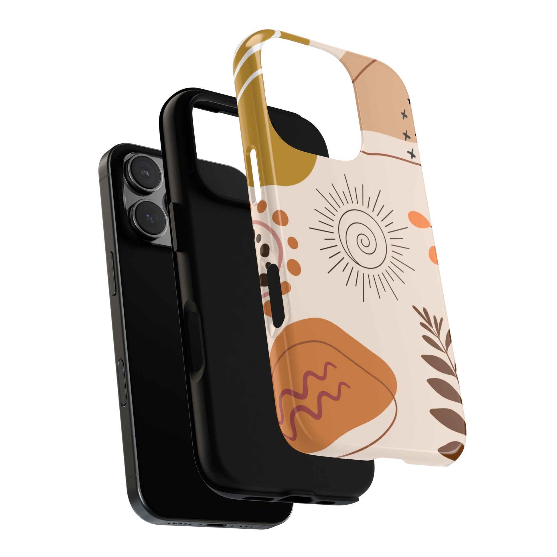 Boho Sunburst & Abstract Doodle Phone Case - Warm Artistic Design - Modern Neutral Aesthetic