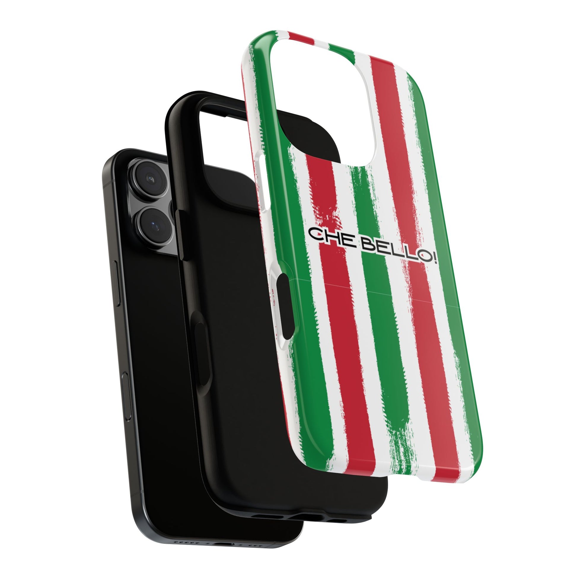 CHE BELLO! Tough Phone Case - Italian Flag Brush Stripes, Retro Font, Bold Italy-Inspired Design for Popular Smartphones