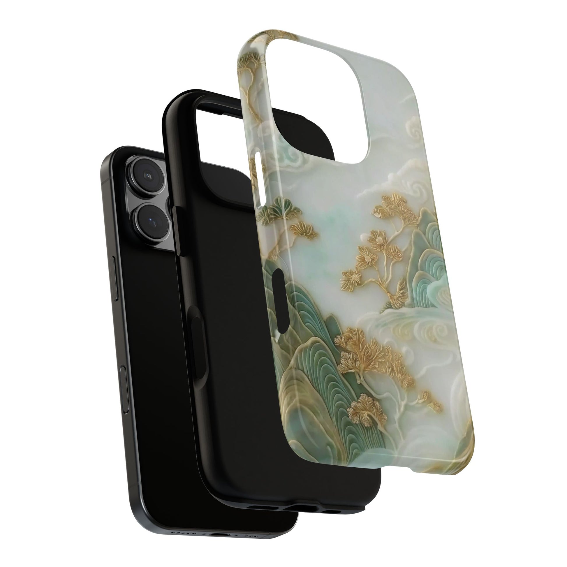 Chinese Jade Carving Style 3D Wraparound Tough Case, Mountain View, Bonsai Trees, Elegant Luxury, Protective Cover for Popular Smartphones