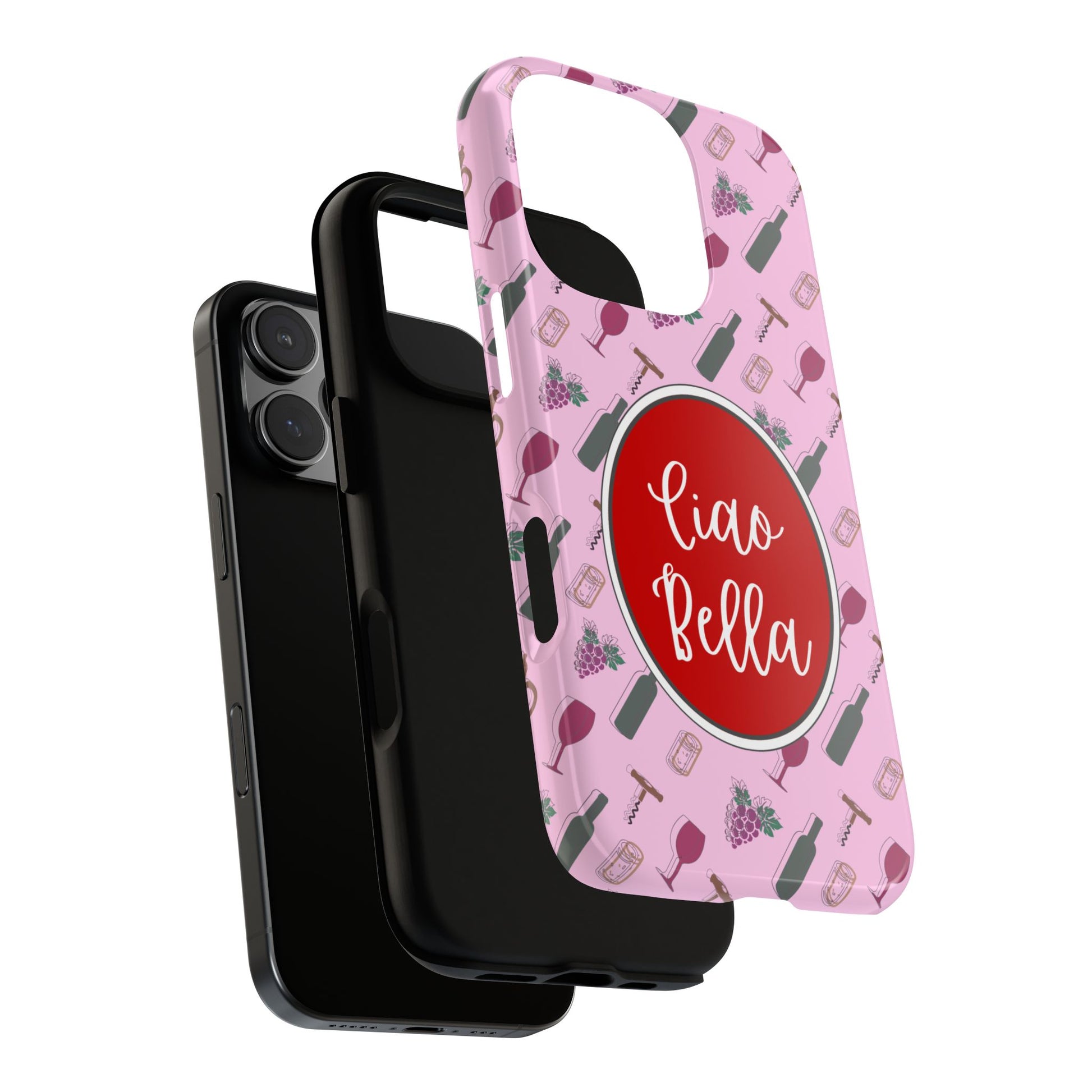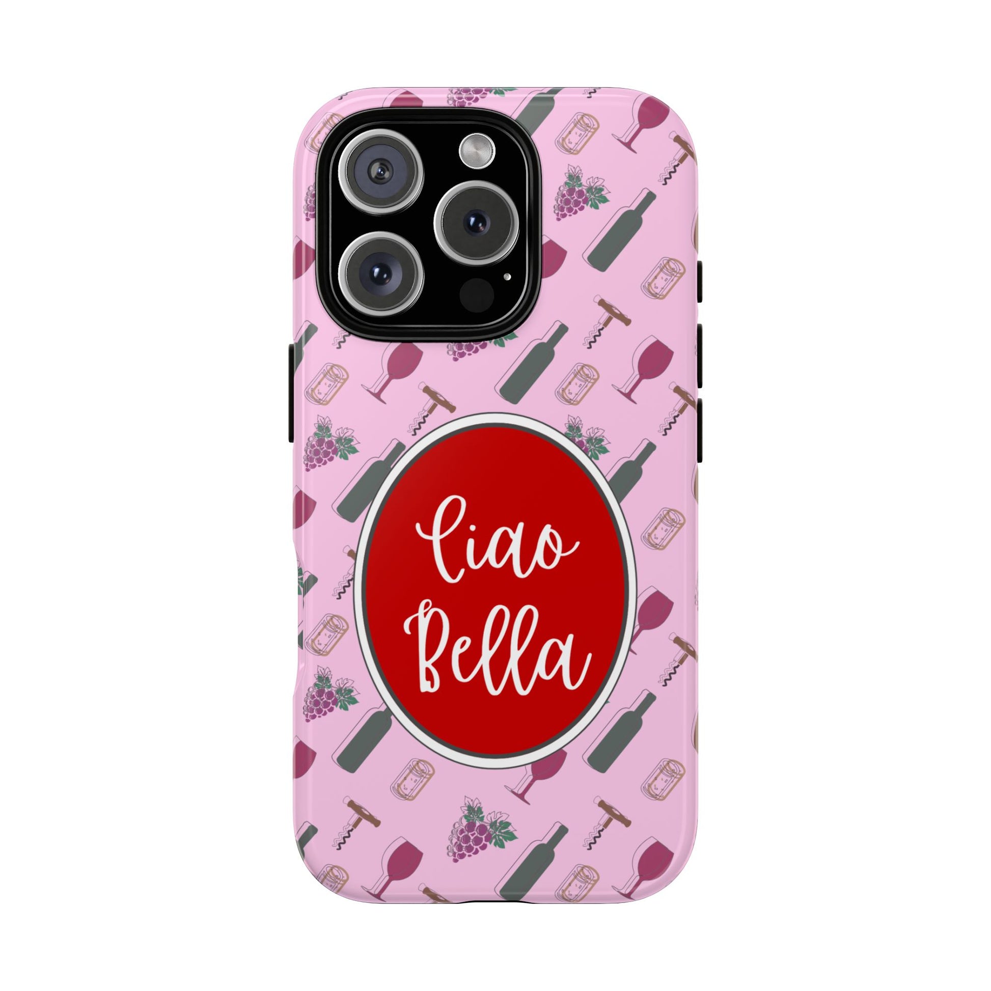 Ciao Bella Wine Lover Phone Case - Cute Italian Aesthetic, Pink Coquette Style