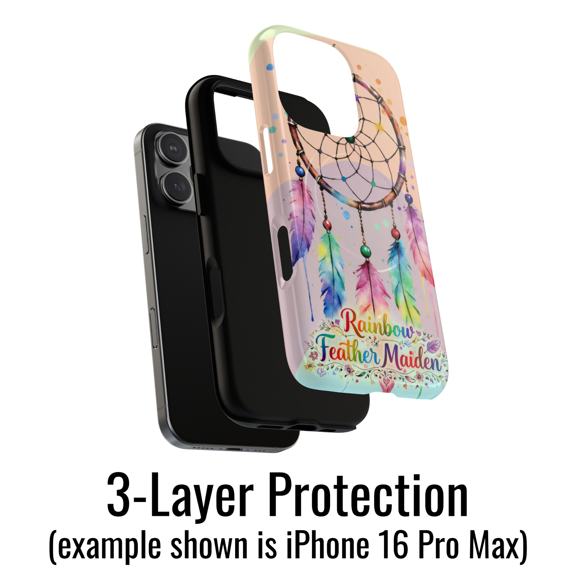 Bring colour, symbolism, and serious protection together in one standout design. The Rainbow Feather Maiden MagSafe Tough Case blends vibrant watercolour dreamcatcher art with rugged, dual-layer protection and built-in magnetic alignment for seamless everyday use.