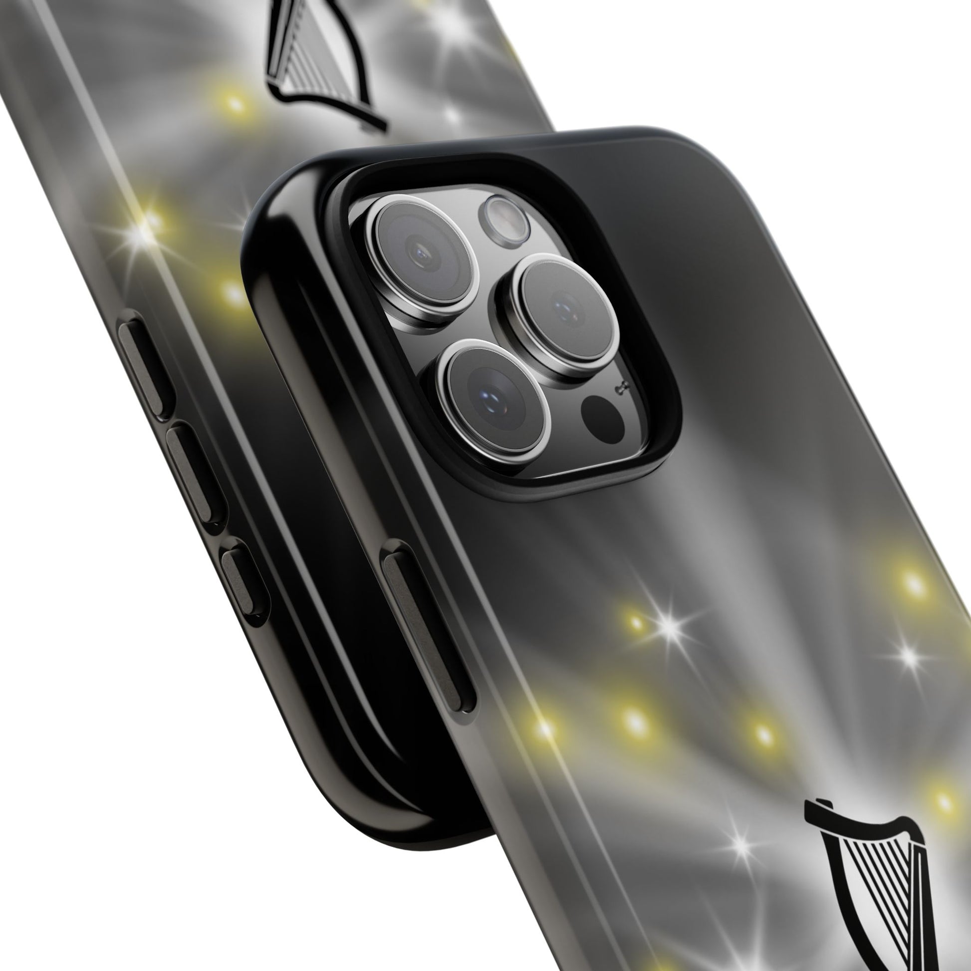 Celebrate Irish heritage with this bold harp phone case featuring a glowing spotlight effect and subtle sparkles. A classic symbol of Ireland presented in a clean, modern style that honours tradition while looking effortlessly contemporary.
