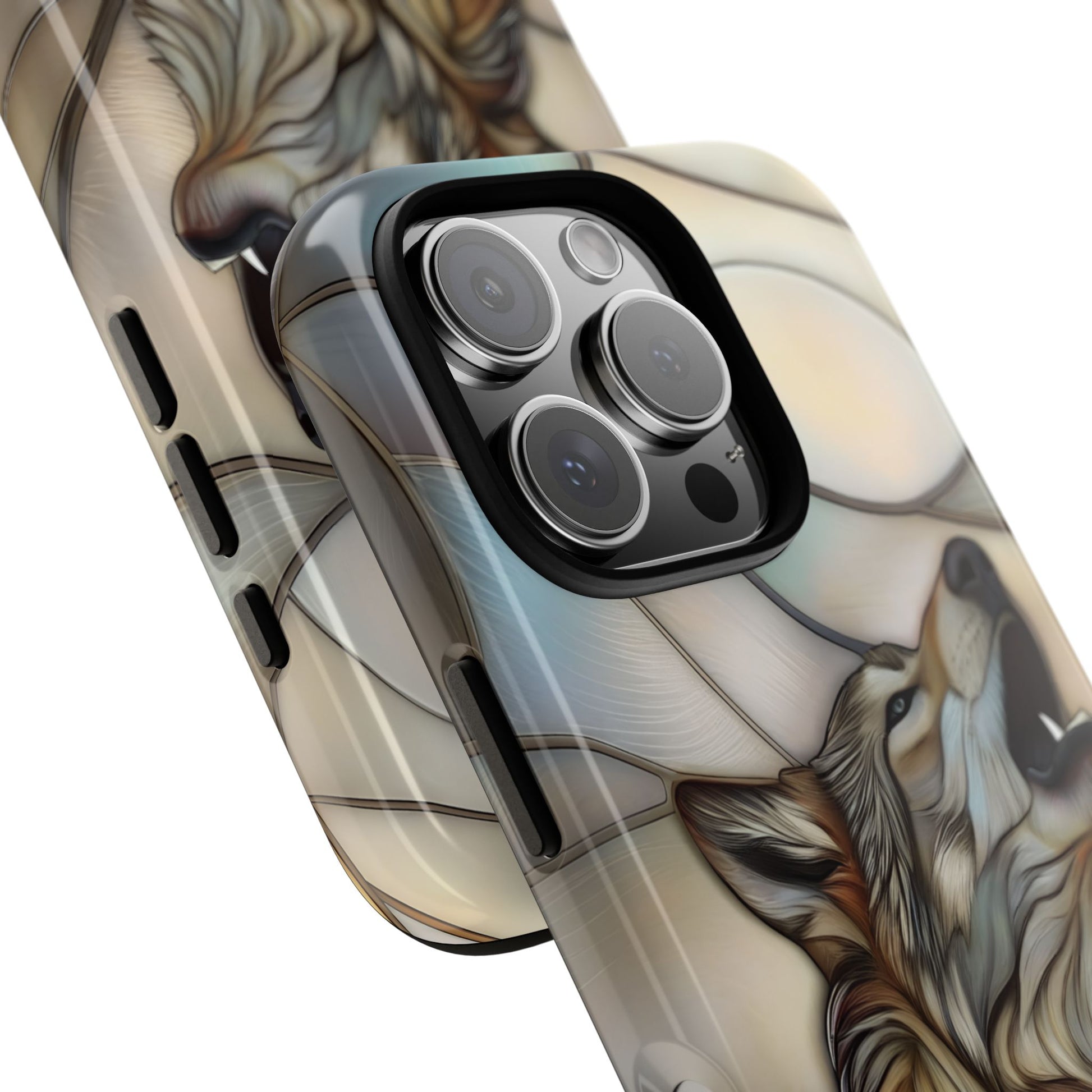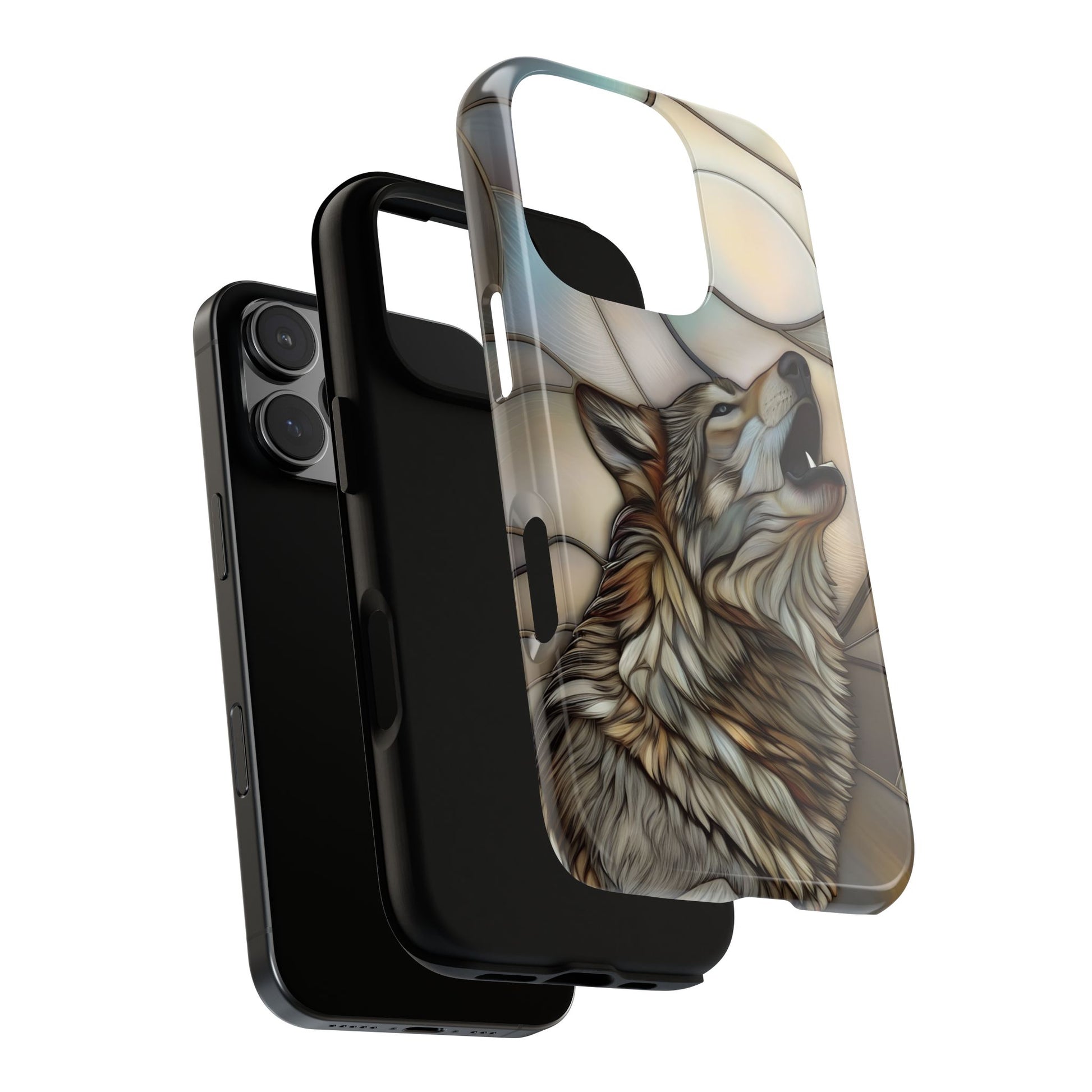 Lone Wolf Stained Glass Phone Case - Howling Wolf Art for Popular Smartphones - Mystical Animal Tough Case