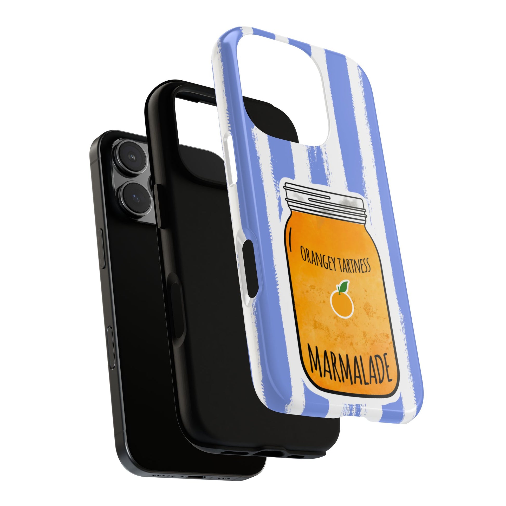 Orangey Tartness Marmalade Jar Phone Case - Quirky British Kitchen Aesthetic, Bold Blue Retro Stripes