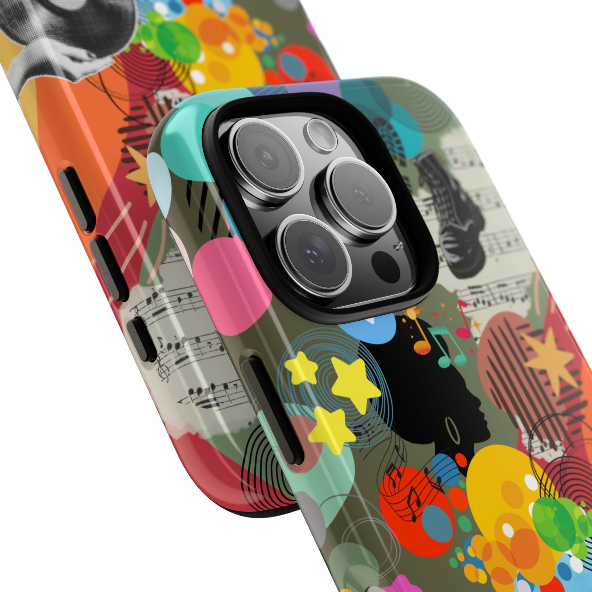 Step into a groovy time machine with this far-out retro vinyl collage phone case. Featuring psychedelic music art in a vibrant pop design, this tough case doesn't just protect your device—it transforms it into a portal to the golden age of vinyl records, festival vibes, and the electric energy of music culture.
