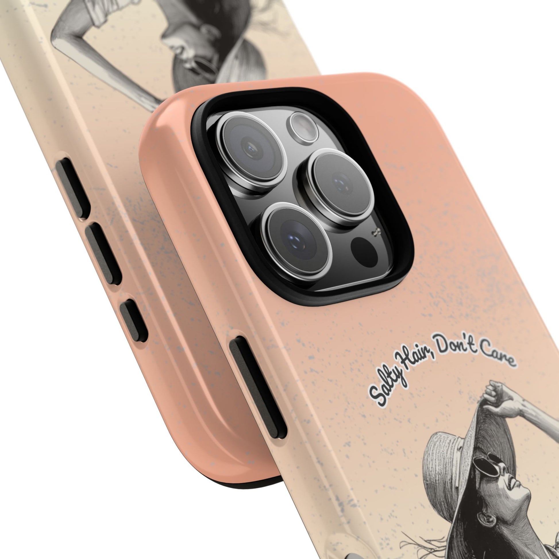 Salty Hair Don't Care Phone Case - Retro Summer Aesthetic Case for Popular Smartphones - Beach Babe Sketch Art - Soft Gradient Tough Case
