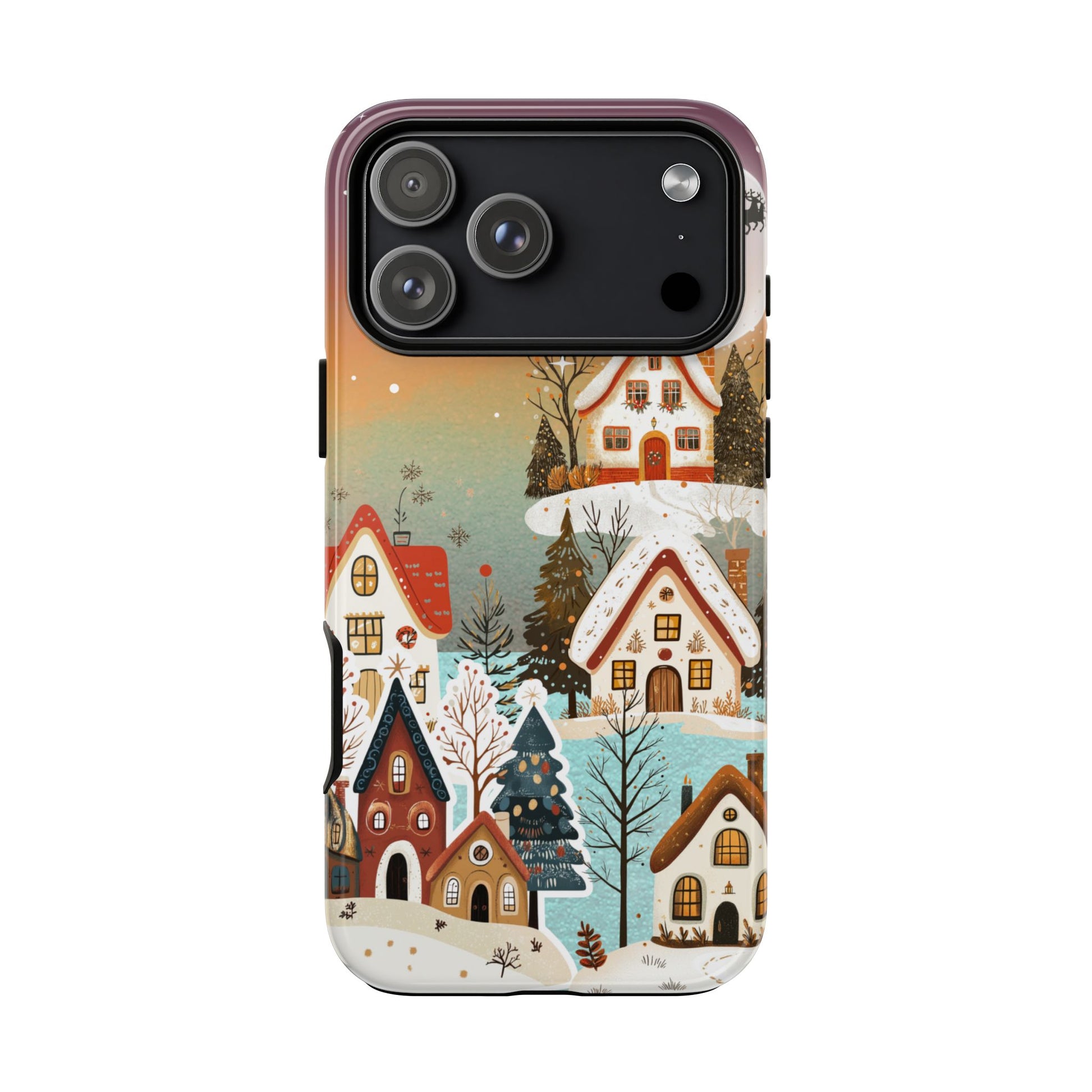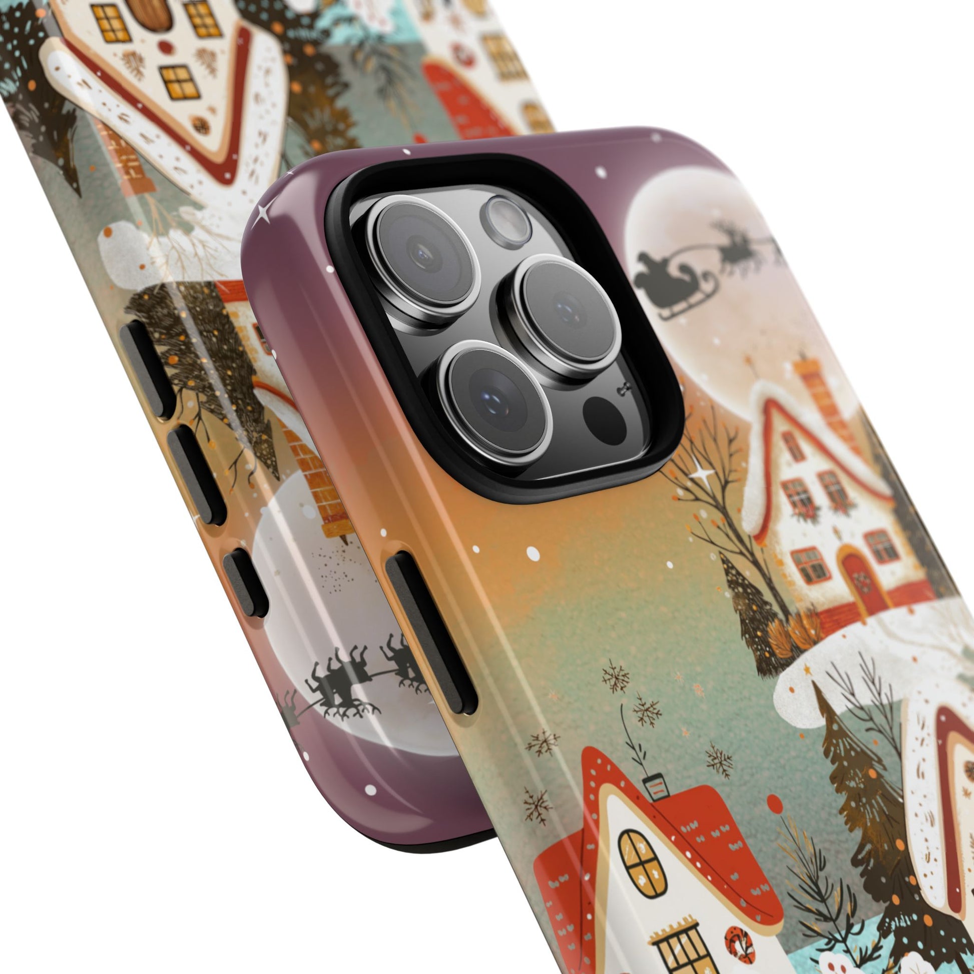 Scandinavian Christmas Night - Festive Winter Village Phone Case with Santa Silhouette