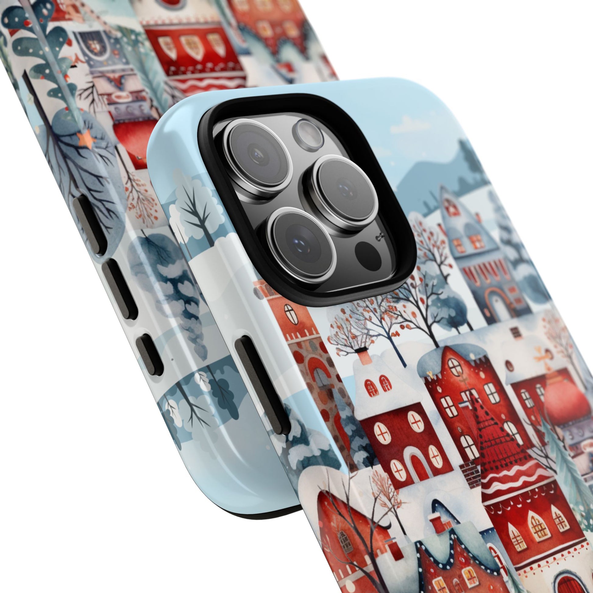 Scandinavian Winter Village Tough Phone Case with Festive Red Houses
