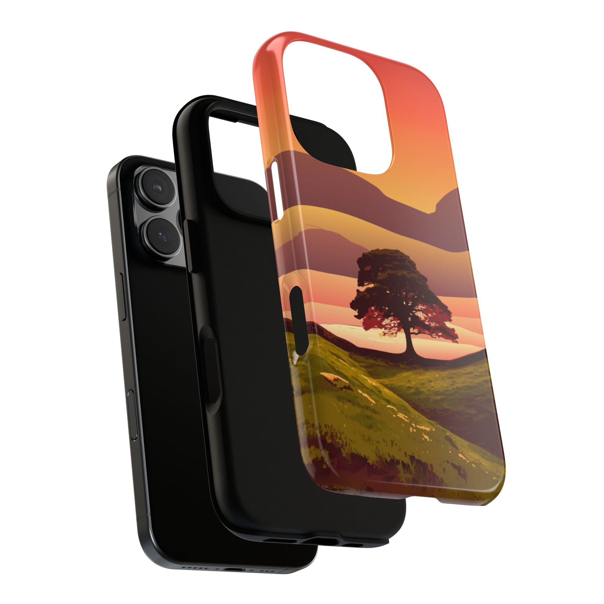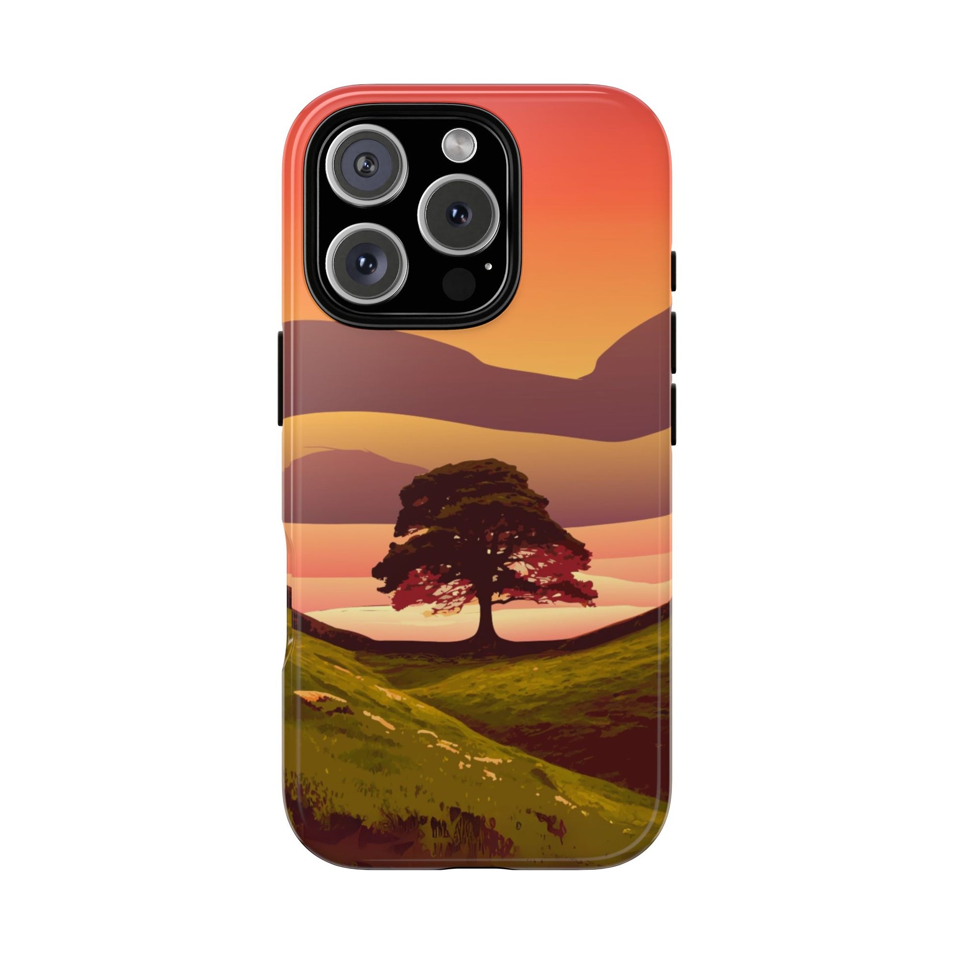 Sycamore Gap Sunset Phone Case - Tribute to Northumberland Landmark Tree - Artistic Tough Cover for Popular Smartphones