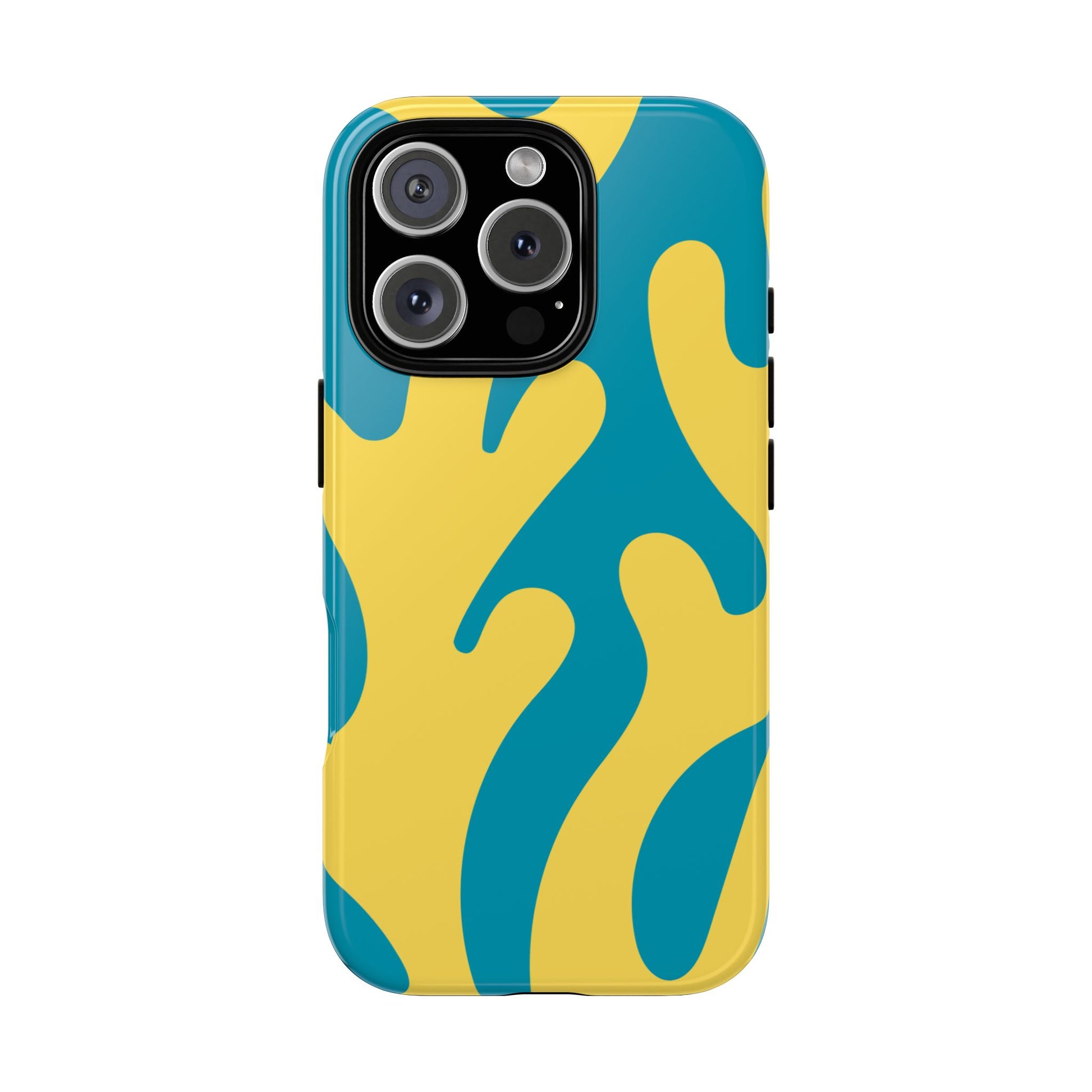 Teal & Yellow Seaweed Abstract Phone Case - Large Scale Organic Line Art