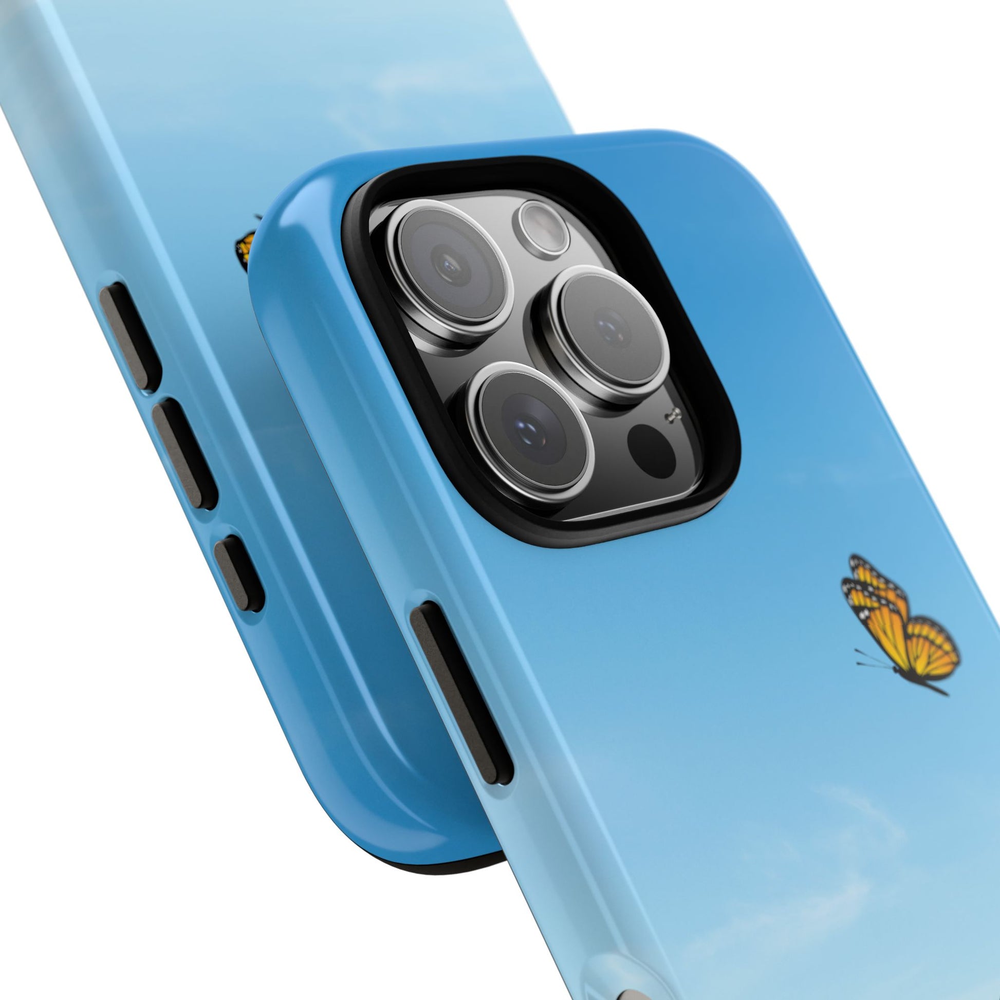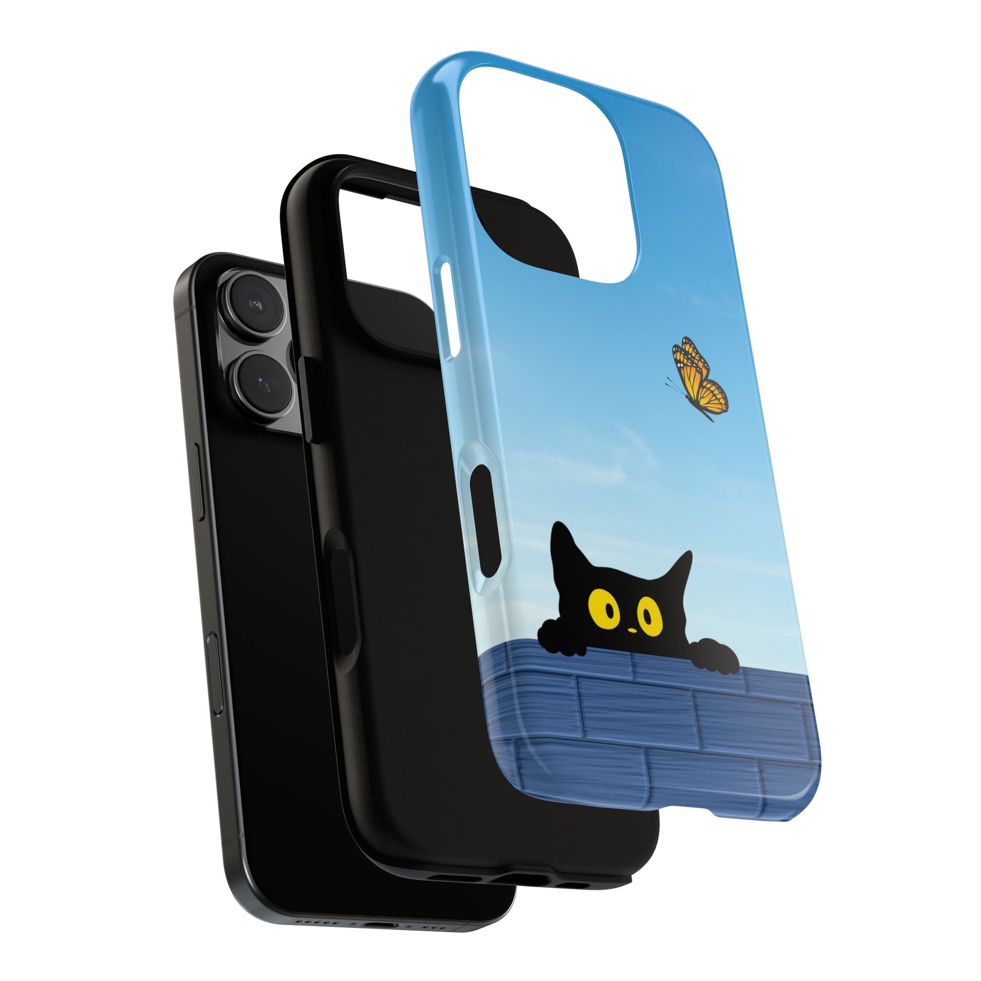 Tough Cases, Cute Cat and Butterfly Phone Case Design, Kawaii Phone Cover, Pet Lover Gift, Cat-Themed Accessory, Animal Case